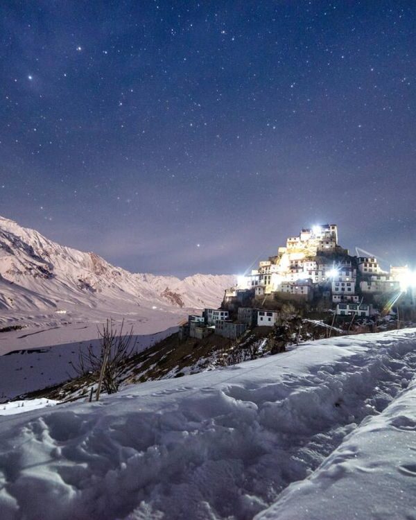 Spiti Valley, an expansive barren land of stark beauty, is situated at an average elevation of around 4000 meters. This cold desert region is renowned for its stunning Buddhist monasteries, vibrant prayer flags fluttering in the wind, and numerous monks engaged in prayer with their wheels